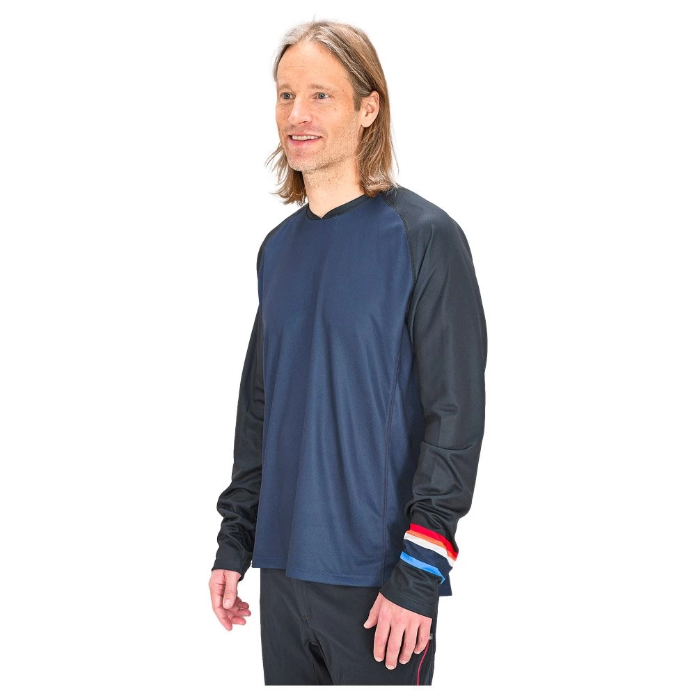 Version manche longue du modèle éponyme, le maillot de VTT pour homme State of Elevenate Allmountain Longsleeve offre des garanties techniques et un confort d’usage exceptionnels, preuve que la marque suédoise sait tout faire dans le milieu outdoor. Dôté d’un tissu léger et ventilé, il vous permettra de rester au frais et d’évacuer la transpiration lorsque le rythme se fera plus intense. Particulièrement agréable à porter, il présente une coupe allongée à l’arrière caractéristique des maillots de VTT, un col côtelé et des manches raglan pour une aisance totale sur tous les terrains. Enfin, il est dôté d’une poche arrière zippée pour ranger en toute sécurité vos effets personnels ou autres accessoires. Clairement, ce maillot a tout le potentiel d’un best-seller en puissance.