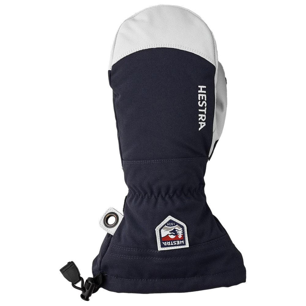 La moufle de ski Hestra Army Leather Heli Ski est faite pour les fans de poudreuse qui veulent que leurs mains soient bien protégées. Le revers est fabriqué en tissu polyamide Triton à 3 couches lui conférant imperméabilité et respirabilité. Elle bénéficie d’une isolation Fiberfill en polyester et la doublure en polaire chaude est amovible, permettant de la faire sécher et aussi de s’adapter aux conditions météo. Il est même possible d’utiliser des sous gants plus fins selon les besoins. Sa paume renforcée en cuir de chèvre et son ajustement incurvé apportent du confort et surtout une bonne accroche des bâtons de ski. Pour un serrage optimal, un strap en velcro et un cordon de serrage sont présents, afin de bien entourer la manche avec le manchon long et éviter toute intrusion de neige qui peut être désagréable.
